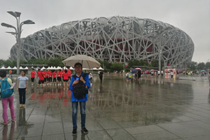 北京鸟巢雨后体验奥运精神